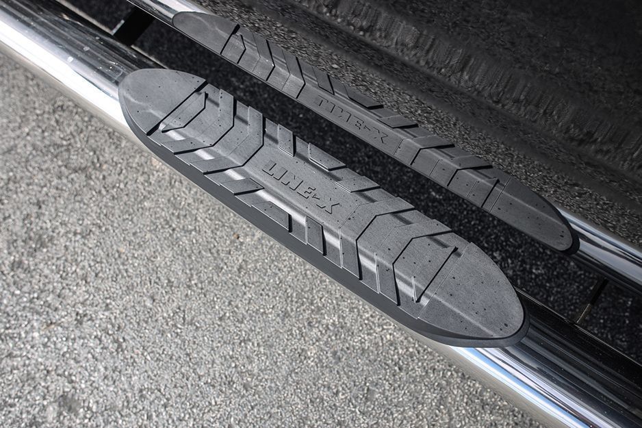 LINE-X 5" Oval Step Bars are constructed from high-quality T304 polished stainless steel tubing with fully welded end caps and are offered in a straight design or “premium” design with 30° bent ends. Available for most trucks, Jeeps, and SUVs, these step bars feature custom branded 5" step pads for an increased surface stepping area. Easy, no-drill installation is made possible with vehicle-specific bolt-on brackets.